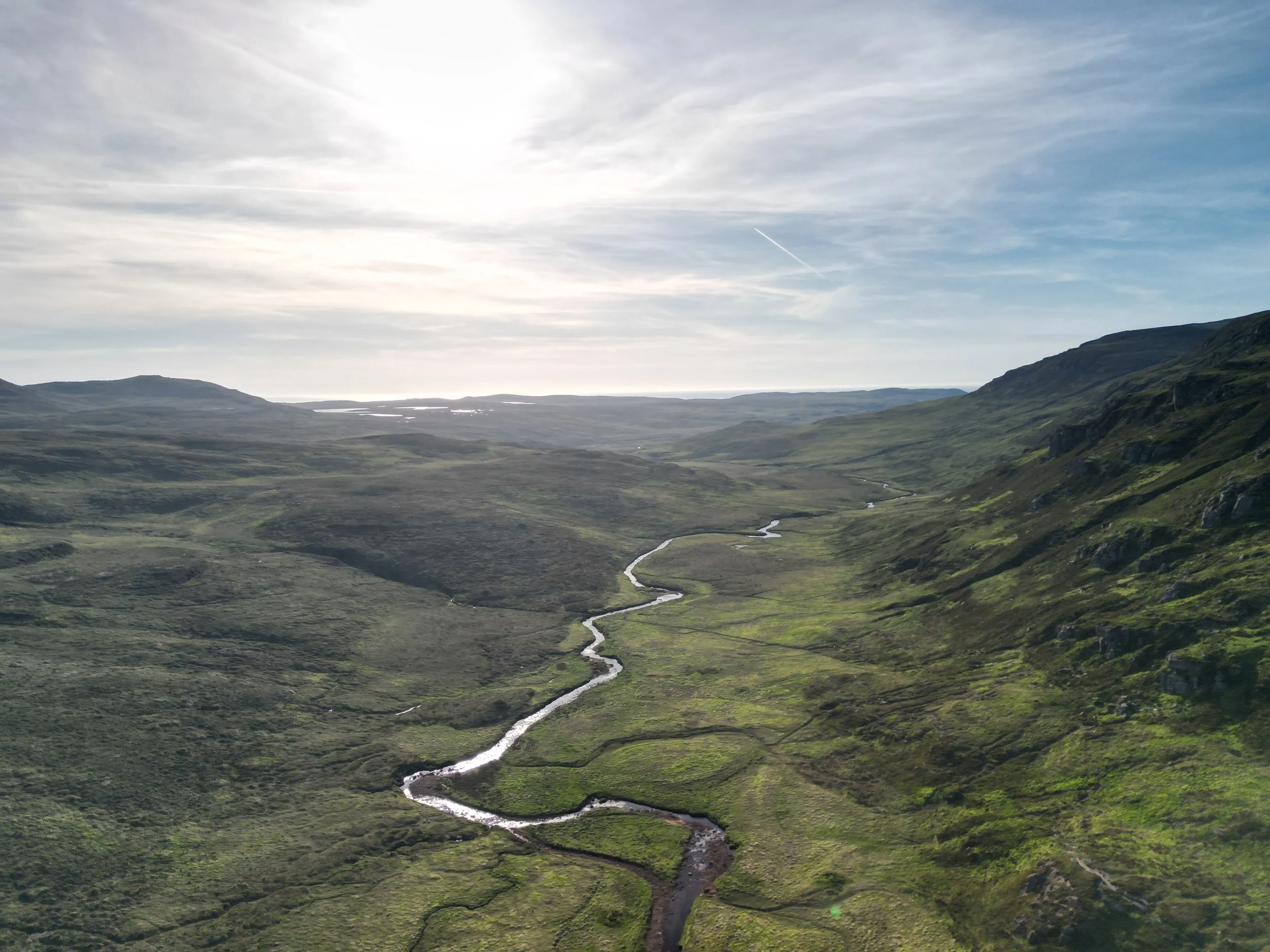 We will meet at Inverness Train Station around 10am. Our 3-hour transfer will depart after meeting those flying in, while those arriving on the fabulous night train can chill out and have breakfast. We will transfer across the stunning North West Highlands to be “infilled” at the side of the road. There is no soft start. This expedition is for experienced team members only. We will then hike across the rugged, boggy, pathless ground to the viewpoint of Fashven (480m) and head south to find a wild camp spot.